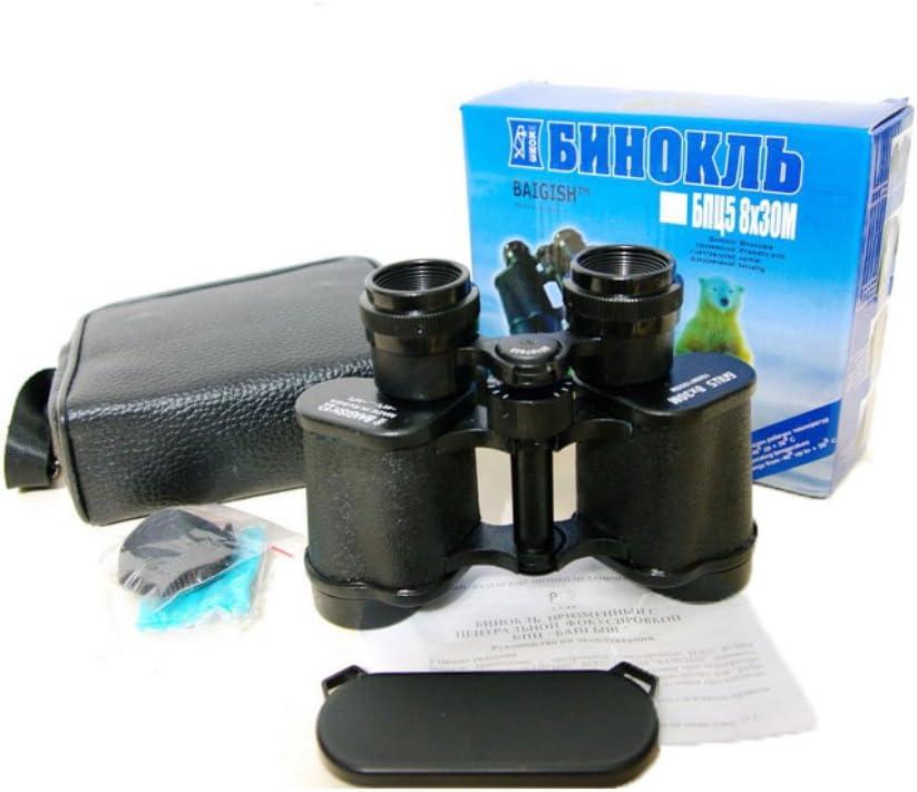 • Case of aluminium alloys, of a rough surface of artificial leather (black color) • Magnification 8x, diameter of lens 30 mm, exit pupil distance 12 mm, wide field of view is 8.6° • Porro prism, multilayer antireflection lens coating • Central focusing, adjustable interpupillary distance • Comes complete with neck strap, hard case with soft leatherette protective covers of the lenses