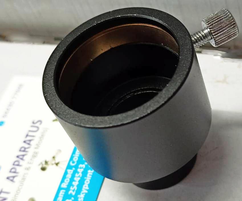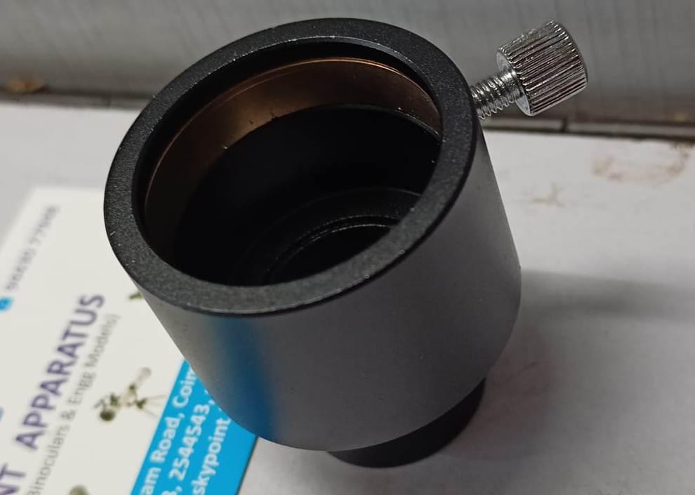 Skypoint 1 Inch Male to 1.25 Inch Female Reducer drops into a 1" telescope eyepiece holder and accepts 1.25" eyepieces.