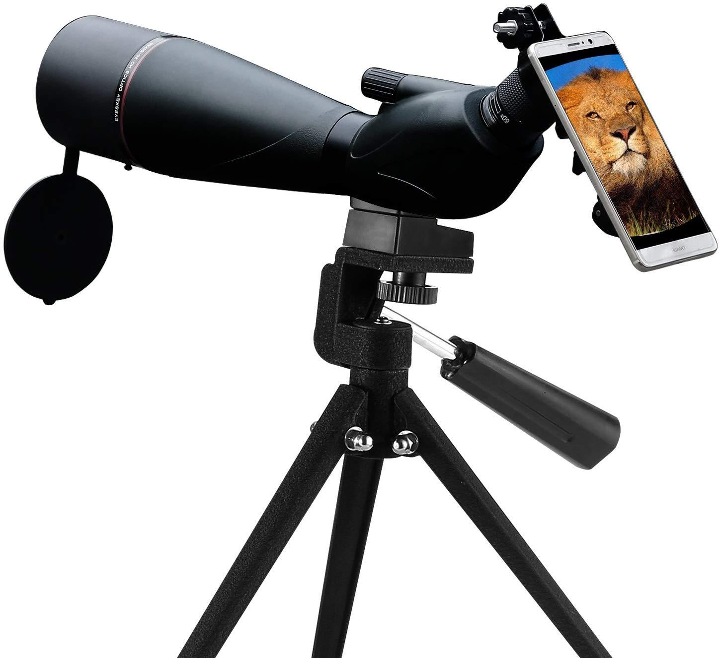This spotting scope offers 20x to 60x variable magnification and dynamic lens focusing system to meet your various requirements for watching sport games, viewing wildlife, hiking Fully multi-coated lens and BaK4 prism coatings to make you obtain brighter, clearer images. Magnesium Alloy Body is strong and durable, but lighter weight than traditional aluminum alloy housings. Twist-up Eyecup-Adjustable eye cup that twists up and down for comfortable viewing with or without eyeglasses. All Eyeskey Optics Products Have Been Covered by a one year Warranty.