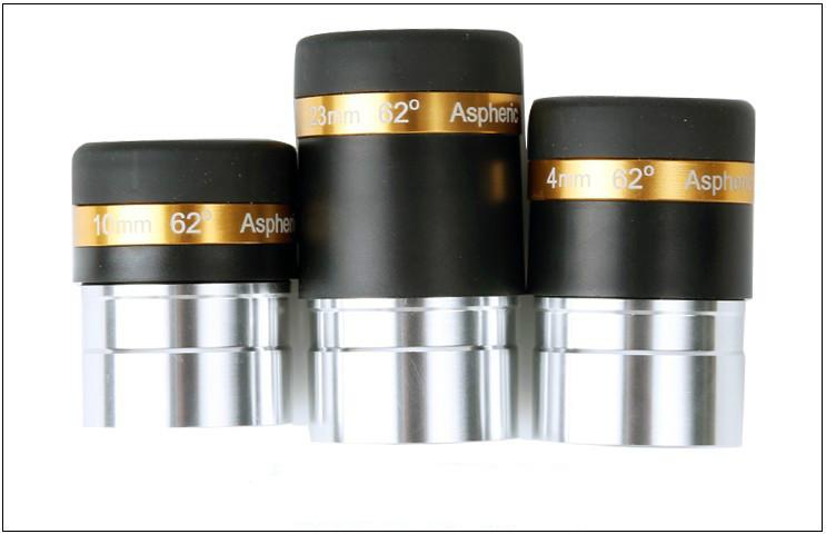 62° aspheric eyepiece set, suitable for 1.25 inch /31.7mm astronomical telescope. - Fully multi-coated glasses for excellent image contrast and light transmission. - The eyepiece of high-definition, it can increase the magnification of the telescope combination. - 62° aspheric field of view.Eyepiece interface recess portion can prevent the loss. Specifications • - Focal Length : 23mm, 10mm, 6mm or 4 mm • - Field of View 62 Degree • - Coating Optical Lenses, Fully Coated, High-definition • - The Structure of the Optical System Aspheric Eyepiece • - ColorBlack+Yellow+Silver