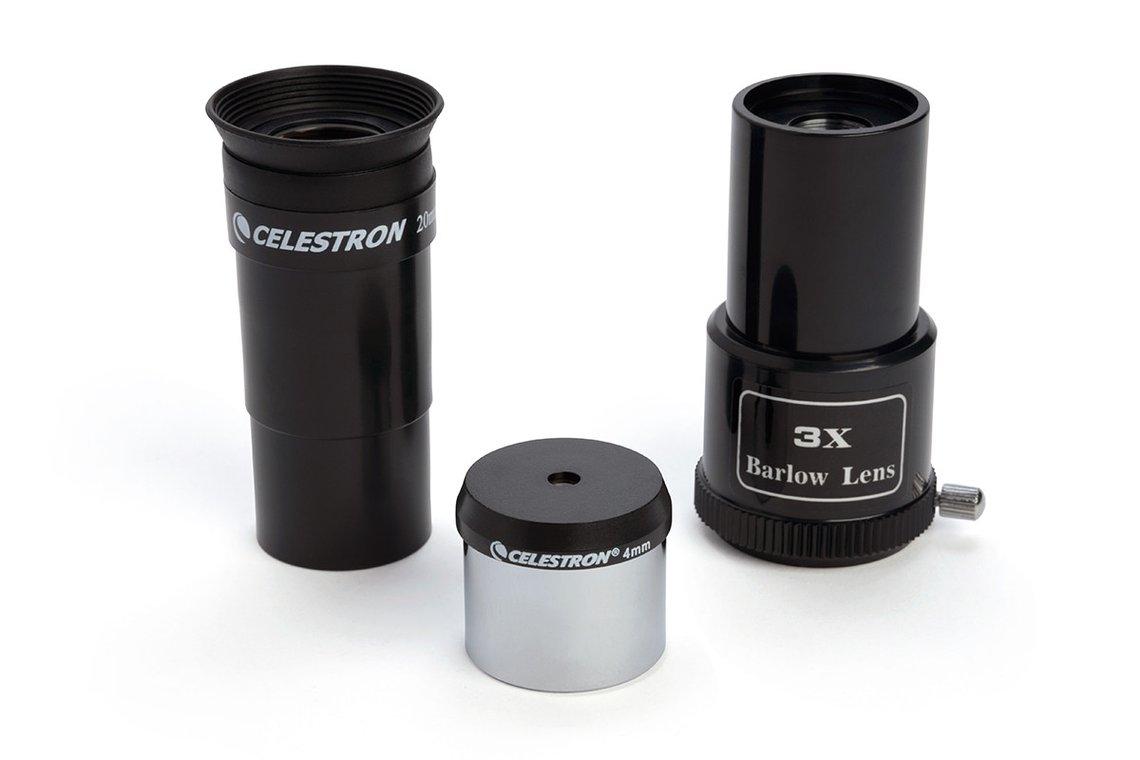 Slow motion controls for smooth tracking Erect image optics - Ideal for terrestrial and astronomical use Fully coated glass optical components with high transmission coatings for enhanced image brightness and clarity 3x Barlow lens triples the magnifying power of each eyepiece Accessory tray for convenient storage of accessories