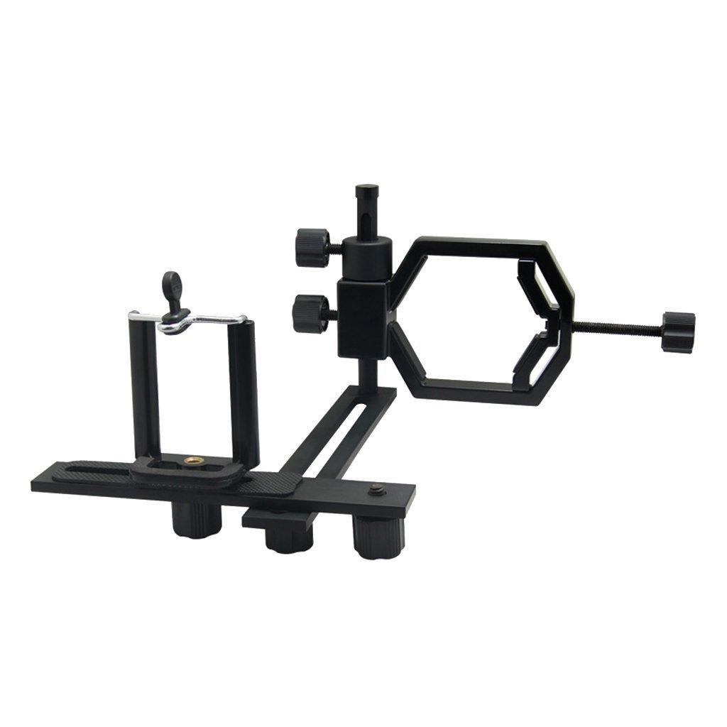 Compatible with Binocular Monocular Spotting Scope Telescope and Microscope. Get Your Mobile Phone Into Video Camera and Image Capturer in Distant, Tiny World . Explore the nature of the world easily through your screen Compliable with microscope, telescope, binocular, monocular, nightvision spotting scope. Fit eyepiece diameter 35mm-65mm Universal: With super large width range:54-83mm, Fit for iphone 6plus, 6,5s,5, Samsung Note , Sony, Sony Xperia Z and many other brands Main Part Made of Aluminum, Fully metal housing. And phone clamp made of high strength PA Plastic Safe and comfortable -The outface to connect phone and eyepiece are covered by soft material .